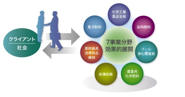 農薬用化学肥料、 薬剤器具、清掃用品機械、各種特殊容器・包装等事業。